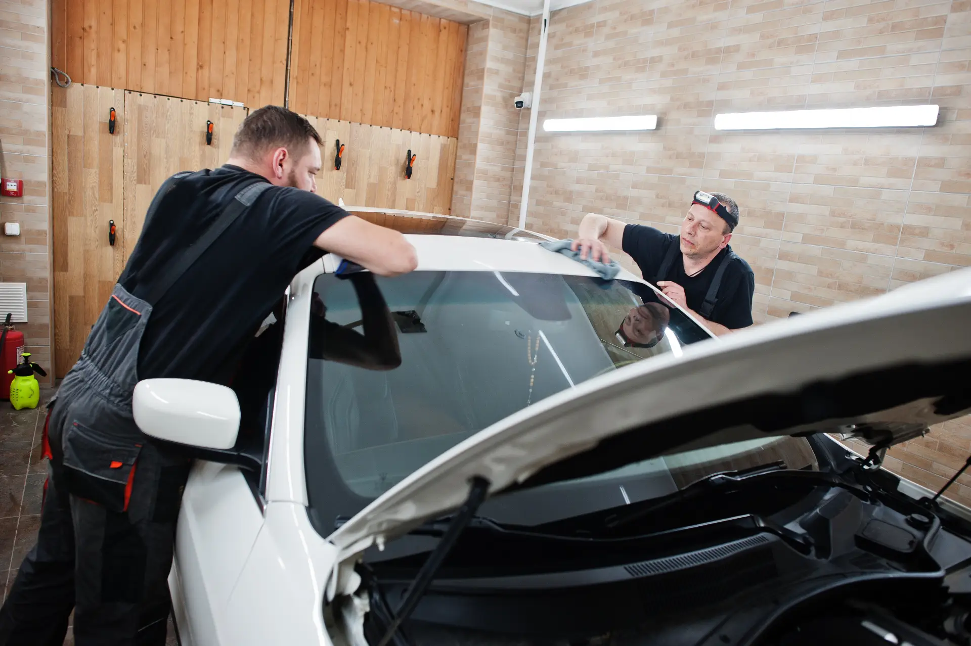 high-quality adhesive is applied meticulously to provide even distribution along the edges of the windshield. This allows for complete coverage that facilitates a strong and durable bond between the glass and the vehicle’s frame.